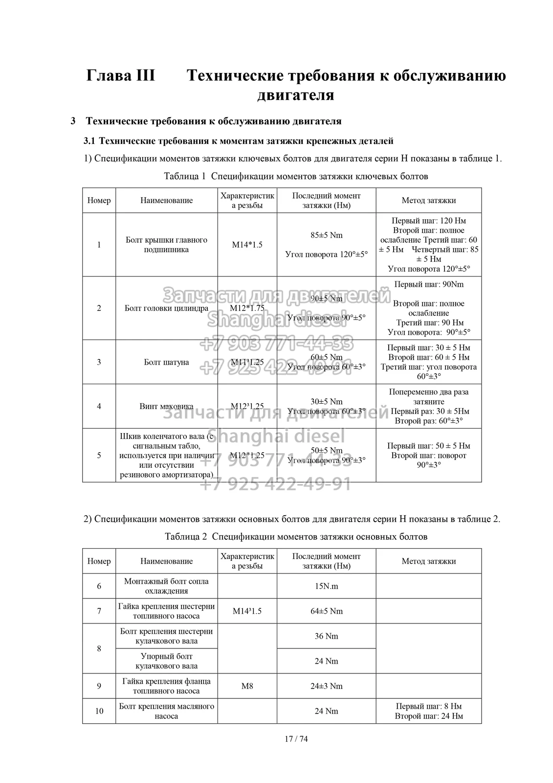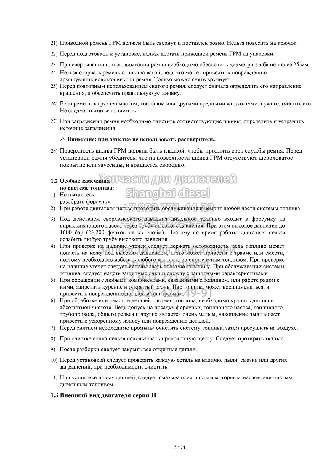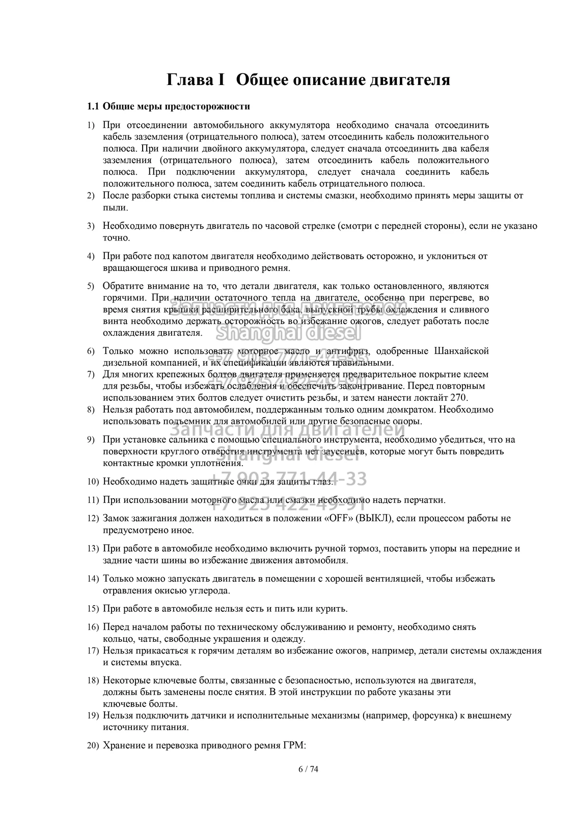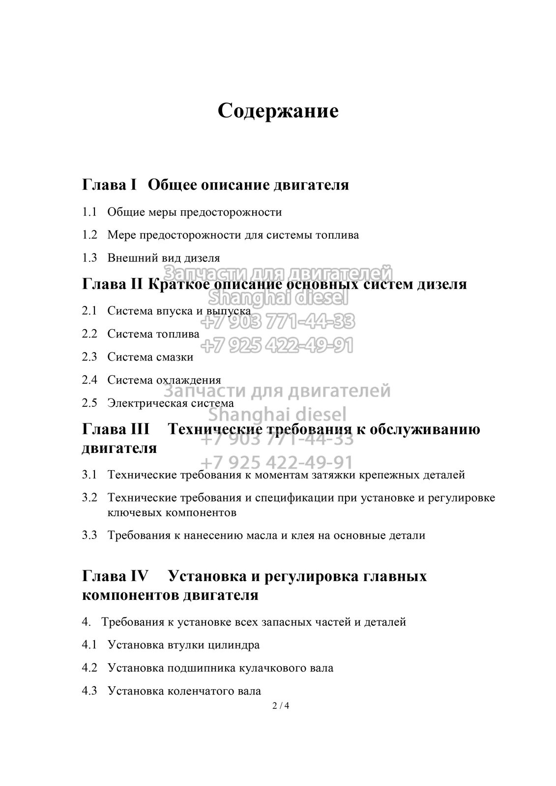 Инструкция по эксплуатации и ремонту двигателя серии SC4/7H Shanghai diesel