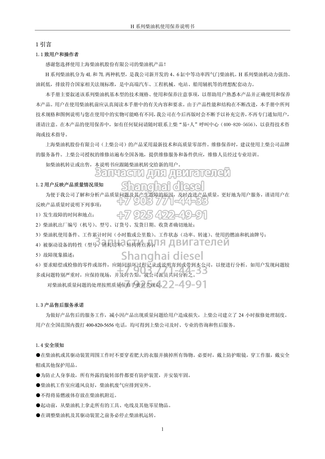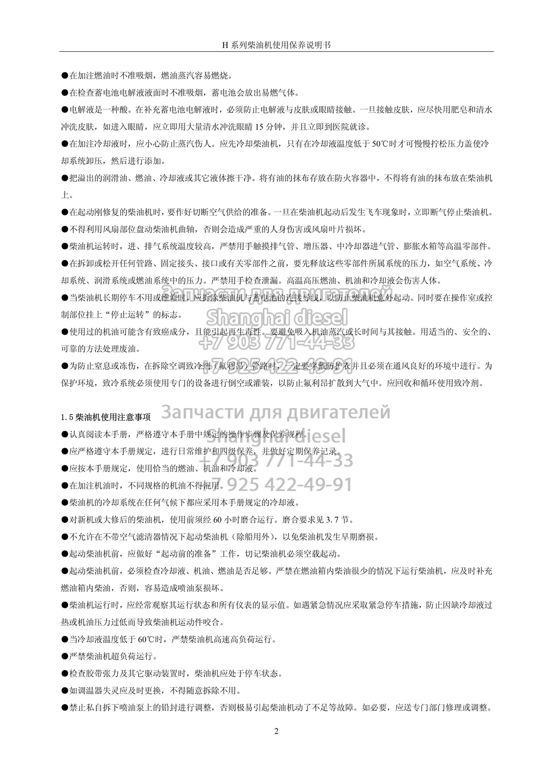 Руководство по эксплуатации и техническому обслуживанию дизельных двигателей серии Н Shanghai diese